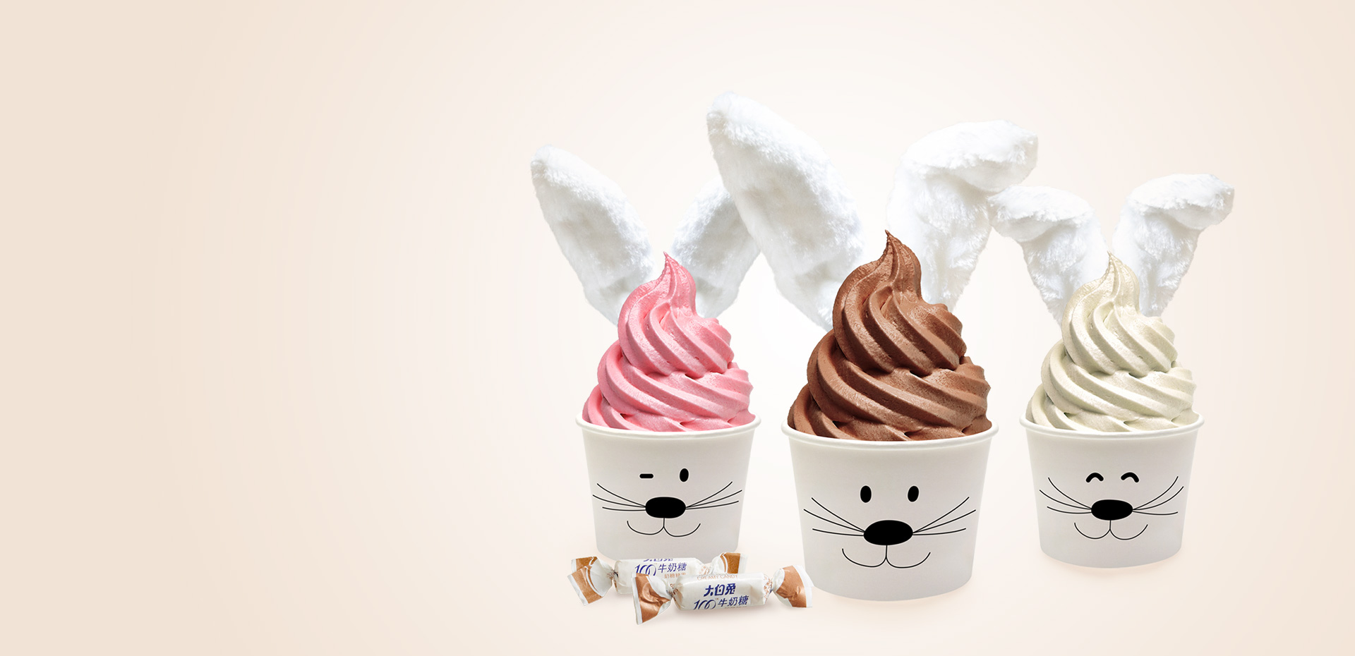 這里有奶糖做的各式兔子