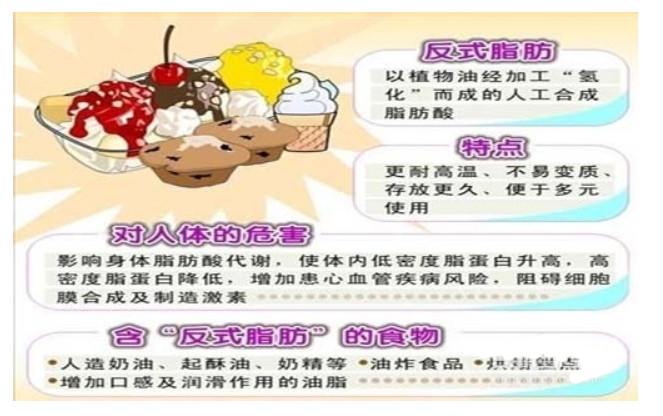 另一種是非天然的反式脂肪酸,它的制作工藝是把植物油通過(guò)人工催化加氫以后形成的,這種反式脂肪酸,雖然看上去和天然奶油一樣,而且可以起到和天然奶油一樣的效果,使制作出的糕點(diǎn)更加松軟有彈性,使炸雞和炸薯?xiàng)l更加香脆可口。但是這類反式脂肪酸對(duì)人體卻沒(méi)有什么好處,是人類健康的殺手。