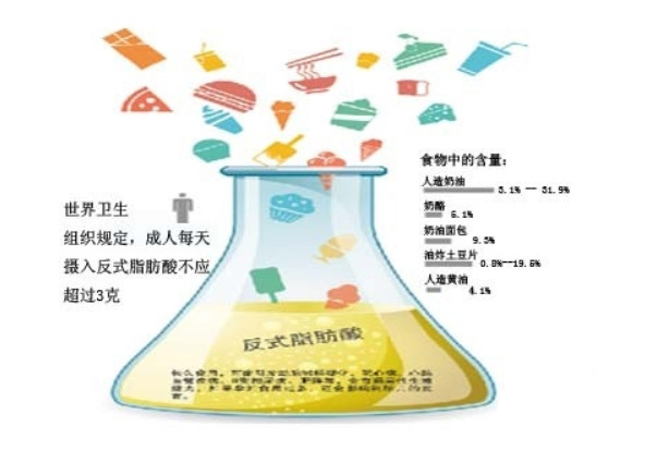 反式脂肪酸分為兩種,一種是天然反式脂肪酸,它存在于牛奶等乳制品中。經(jīng)研究發(fā)現(xiàn),這種反式脂肪酸不但對(duì)人體沒(méi)有害處,反而還可以減少體內(nèi)脂肪堆積,在脂質(zhì)和葡萄糖代謝中起作用,所以我們不但不應(yīng)該遠(yuǎn)離,而且應(yīng)該放心食用。